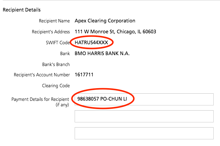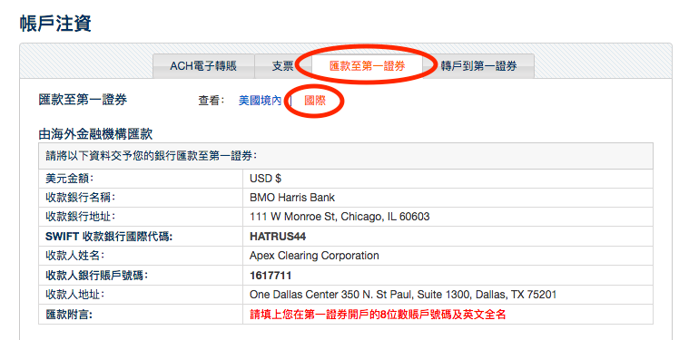 找到 Firstrade 帳戶號碼後,在匯款畫面這樣填: