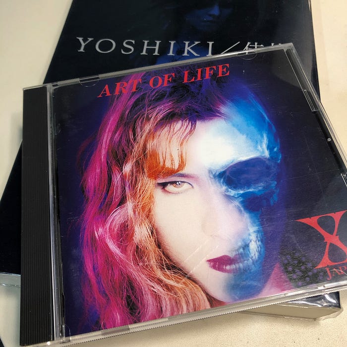 這張的 Artwork 也有個故事,在底下那本《YOSHIKI/佳樹》有提到,因為 YOSHIKI 耍任性一定要用半邊骷髏,所以簽了切結書硬是拍了 X 光。